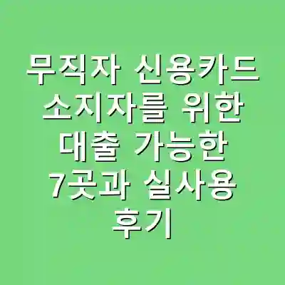 오늘날 많은 사람들이 갑작스러운 자금 필요성으로 인해 대출을 고려하게 됩니다. 그러나 소득 증빙이 어려운 무직자들은 대출 심사에서 높은 문턱을 경험하게 됩니다. 특히, 신용카드를 소지하고 있는 경우, 카드 사용 내역을 통해 대출이 가능할 수 있습니다. 본 글에서는 무직자 신용카드 소지자들이 대출 가능한 7곳과 그에 대한 실제 후기를 종합적으로 정리해 보았습니다. 이 글을 통해 대출을 고려 중인 분들은 유용한 정보와 실제 사례를 얻어가실 수 있을 것입니다.