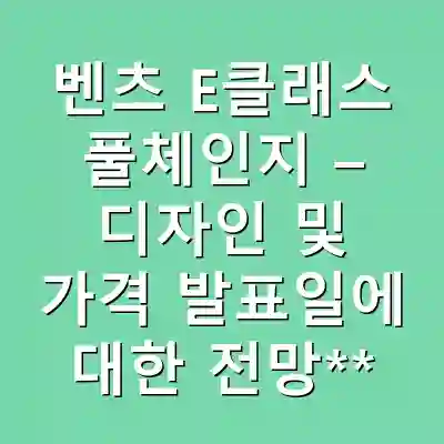 벤츠 E클래스 풀체인지 모델은 2026년 하반기부터 2027년 초에 출시될 것으로 예상됩니다. 디자인 변화와 함께 전동화 모델의 추가가 주요 특징이며, 가격은 2026년 중반에 발표될 가능성이 큽니다. 이러한 변화는 소비자에게 더 나은 주행 경험을 제공할 것입니다.