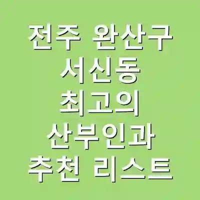 전주 완산구 서신동의 산부인과 추천 리스트는 A병원, B여성병원, C클리닉 등입니다. 이들 병원은 각각 전문적인 서비스와 장점을 가지고 있습니다. 병원 선택 시 의료진의 전문성과 병원의 시설을 고려하는 것이 중요합니다.