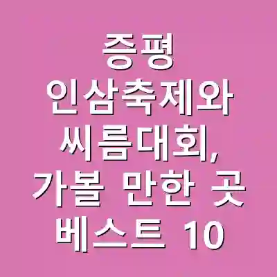 증평 인삼축제는 전국 최고의 인삼 생산지에서 열리며, 다양한 프로그램과 씨름대회가 함께합니다. 아울러 증평의 가볼 만한 장소들도 다양해 여행의 즐거움을 더합니다. 인삼축제를 통해 건강과 문화를 동시에 경험해 보세요.