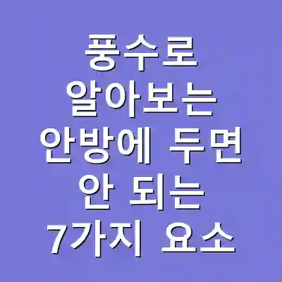 안방에 두면 안 되는 7가지는 거울의 위치, 전자기기, 죽은 식물, 강한 색상, 불필요한 물건, 불쾌한 냄새, 어지러운 배치입니다. 이러한 요소들을 피하고, 올바른 배치와 관리를 통해 안방의 기운을 긍정적으로 변화시킬 수 있습니다. 풍수를 활용하여 건강한 생활 공간을 만들어보세요.