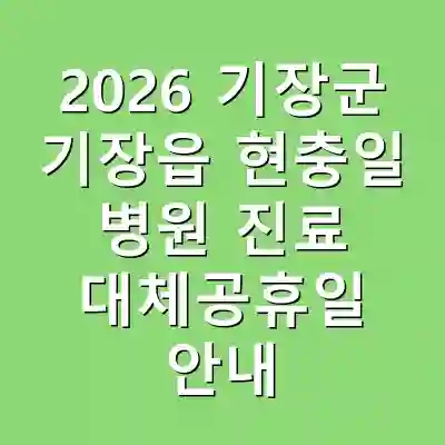 2026년 기장군 기장읍의 현충일 및 대체공휴일 진료 정보는 병원의 운영 시간과 방법에 대한 중요한 정보입니다. 이 글을 통해 병원 방문 시 유의사항과 예약 방법을 확인할 수 있습니다. 건강을 유지하기 위해 필요한 정보를 잘 활용하시기 바랍니다.
