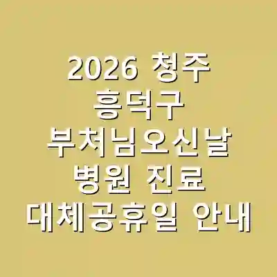2026년 부처님오신날 청주 흥덕구에서 운영되는 병원들의 진료 정보를 집중적으로 정리했습니다. 병원 선택 시 전문 과목과 진료 시간을 고려하고, 예약 절차와 유의 사항을 숙지하는 것이 중요합니다. 최상의 진료를 위해 미리 준비하는 것이 건강을 지키는 첫걸음입니다.