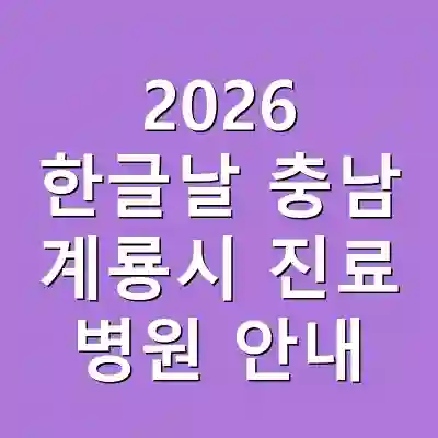 충남 계룡시에서 2026 한글날을 맞아 필요할 수 있는 진료 병원에 대한 정보를 제공했습니다. 인근 응급 의료기관과 병원 방문 시 주의사항을 정리하여 건강을 지키는 데 도움이 되길 바랍니다.
