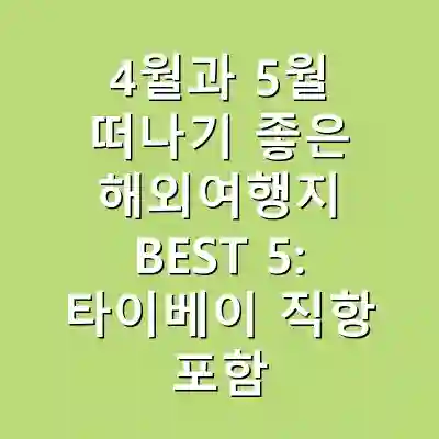 4월과 5월은 봄의 정수를 만끽할 수 있는 여행 시즌입니다. 이 시기에 해외여행을 계획하는 분들은 타이베이 직항을 포함하여 다양한 옵션을 고려할 수 있습니다. 특히, 날씨가 쾌적하고 관광지들이 한창 매력을 발산하는 시점이어서 더욱 추천됩니다. 이 글을 통해 추천하는 5개 해외여행지를 알아보시고, 알찬 여행 계획을 세워보세요.