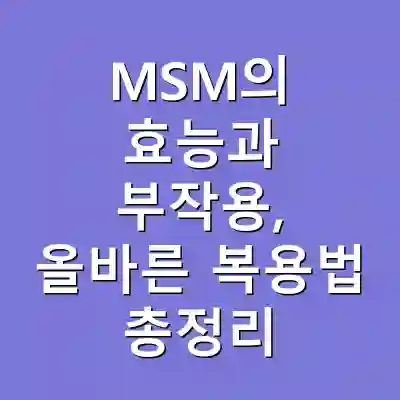 MSM은 관절 통증 및 염증 완화에 효과적이며, 항염 및 항산화 작용을 통해 전반적인 건강에 기여합니다. 부작용과 복용법을 정확히 이해하고 활용할 경우 큰 이점을 누릴 수 있습니다.